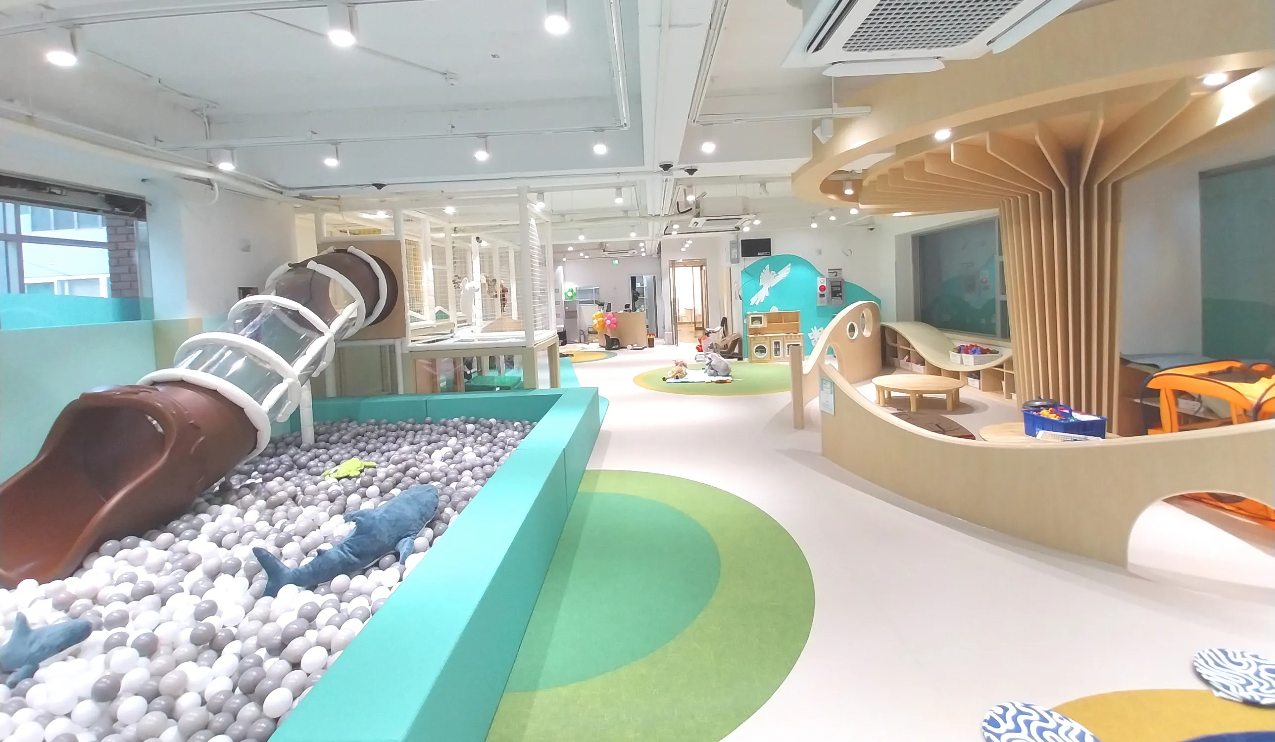 현대지식산업센터 1층에 마련된 2호점 아이세상놀이터점은 기존의 실내 놀이터를 재단장해 서울형 키즈카페로 운영된다. 면적은 약 180㎡로 최대 18명의 영유아가 동시에 이용할 수 있다. 기존 놀이 시설인 트램펄린, 플레이짐 외에도 편백나무 존, 블록놀이 존, 체험 프로그램 존을 추가했다.