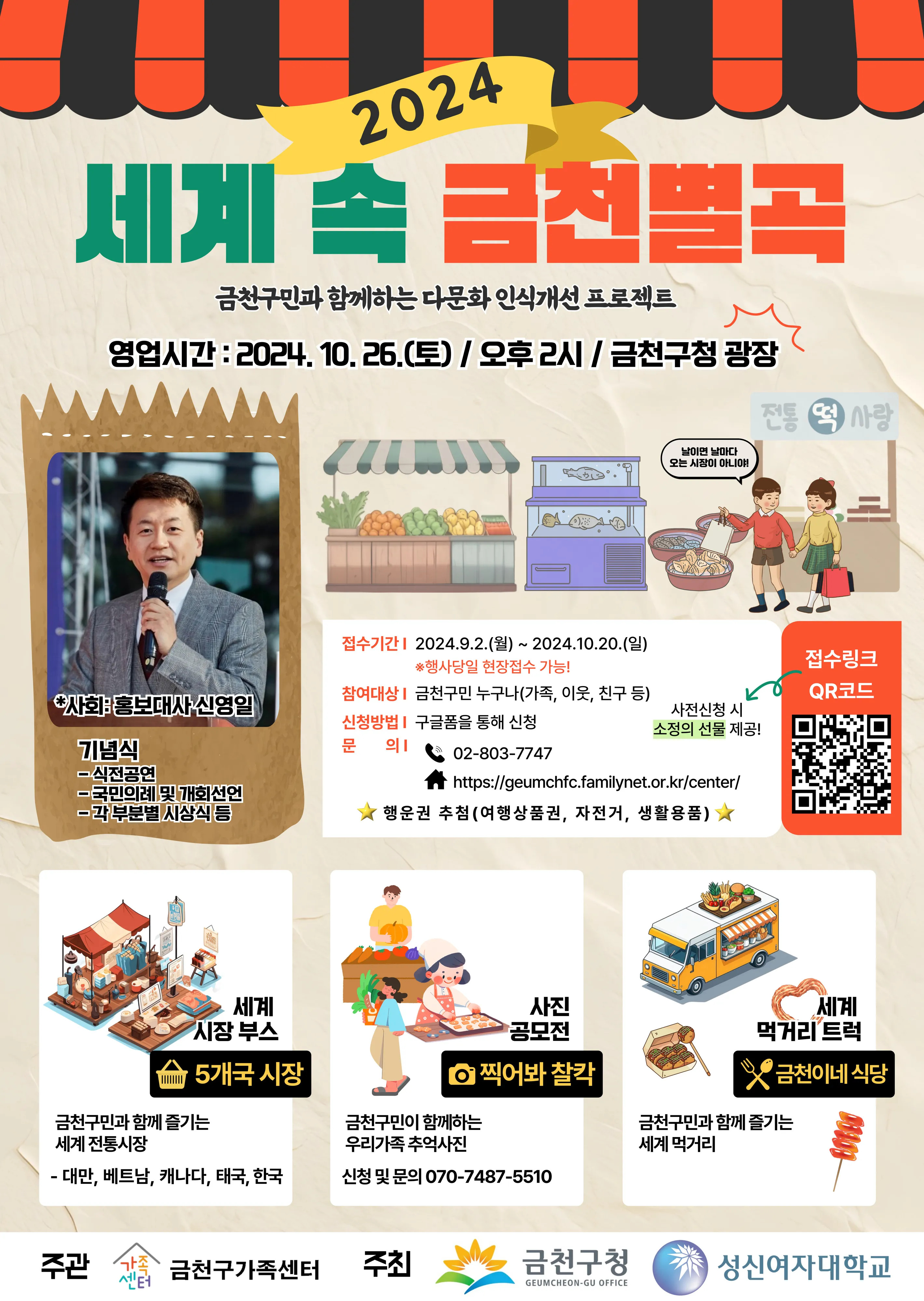 유성훈 금천구청장은 “이번 축제가 내∙외국인 주민들이 세계의 다양한 문화를 경험하고 서로 이해할 수 있는 소통의 시간이 되길 바란다”며 “앞으로도 내외국인 주민들이 상생할 수 있는 지역사회 조성을 위해 최선을 다하겠다”고 말했다.