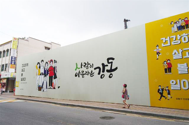 서울 강동구가 대형 공사장 주변 가설울타리에 디자인을 새롭게 입혔다고 2일 밝혔다.