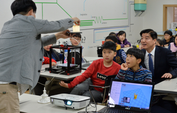 이 구청장은 “(3D 프린터에 대한) 지식은 저와 여러분이 똑같을 거예요. 같이 배운다고 생각할게요”라며 1시간 동안 강사의 말에 귀를 기울였다.