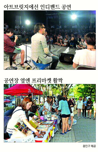 이뿐만 아니다. 광진구는 건대입구역 2번 출구 주변에 아마추어 가수들의 버스킹(거리공연) 공간을 꾸미고 있다. 또 광진문화예술회관 앞에는 가족들이 자유롭게 공연할 수 있는 공간을 만드는 작업을 추진 중이다. 구 관계자는 “건대부터 세종대까지 이어지는 거리를 프랑스 파리의 몽마르트르 언덕처럼 예술과 문화가 흐르는 곳으로 만들 것”이라고 설명했다.