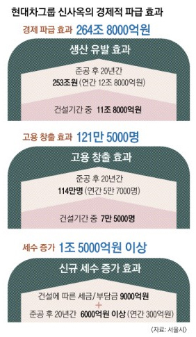 앞으로 현대차그룹은 변전소를 250억원의 비용을 들여 부지 내 가장자리로 옮길 것으로 예상된다. 시는 GBC 건축으로 준공 20년 후까지 264조 8000억원의 생산 유발 효과를 예상하고 있다. 또 같은 기간 121만 5000명의 고용 창출과 1조 5000억원 이상의 세수 증가를 추정한다.