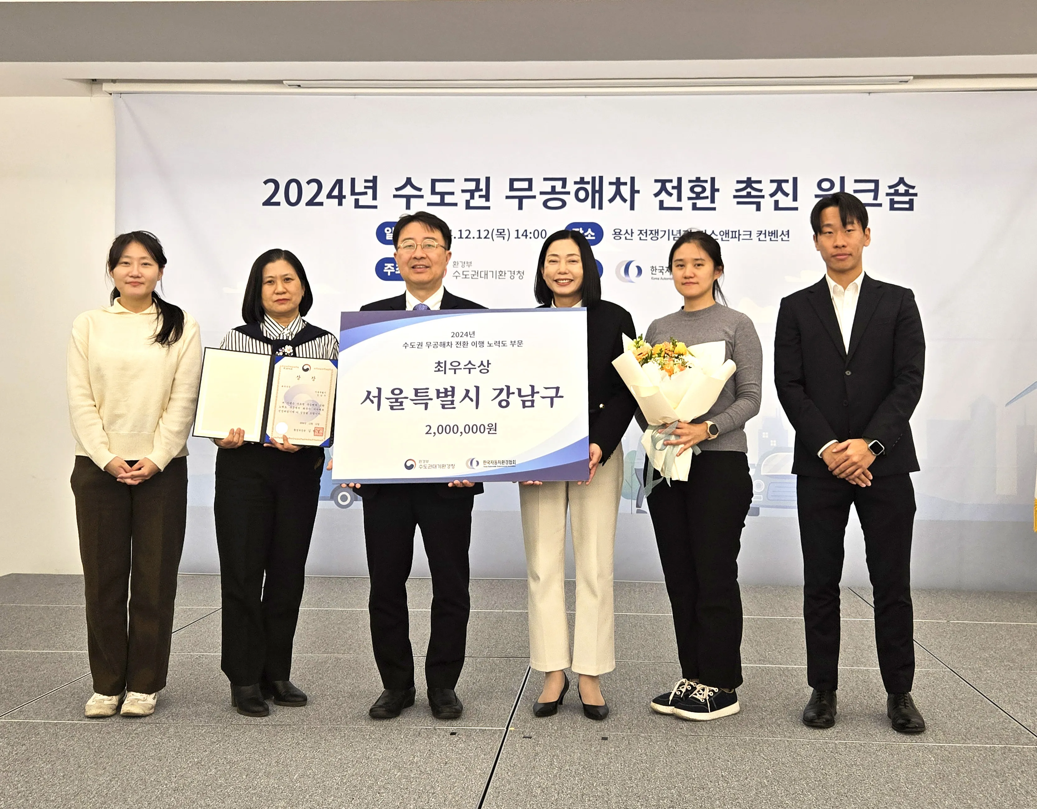 서울 강남구는 환경부 수도권대기환경청이 주관하는 ‘2024년 수도권 무공해차 전환 촉진을 위한 워크숍’에서 1위에 해당하는 최우수상(환경부 장관상)을 수상했다고 13일 밝혔다.