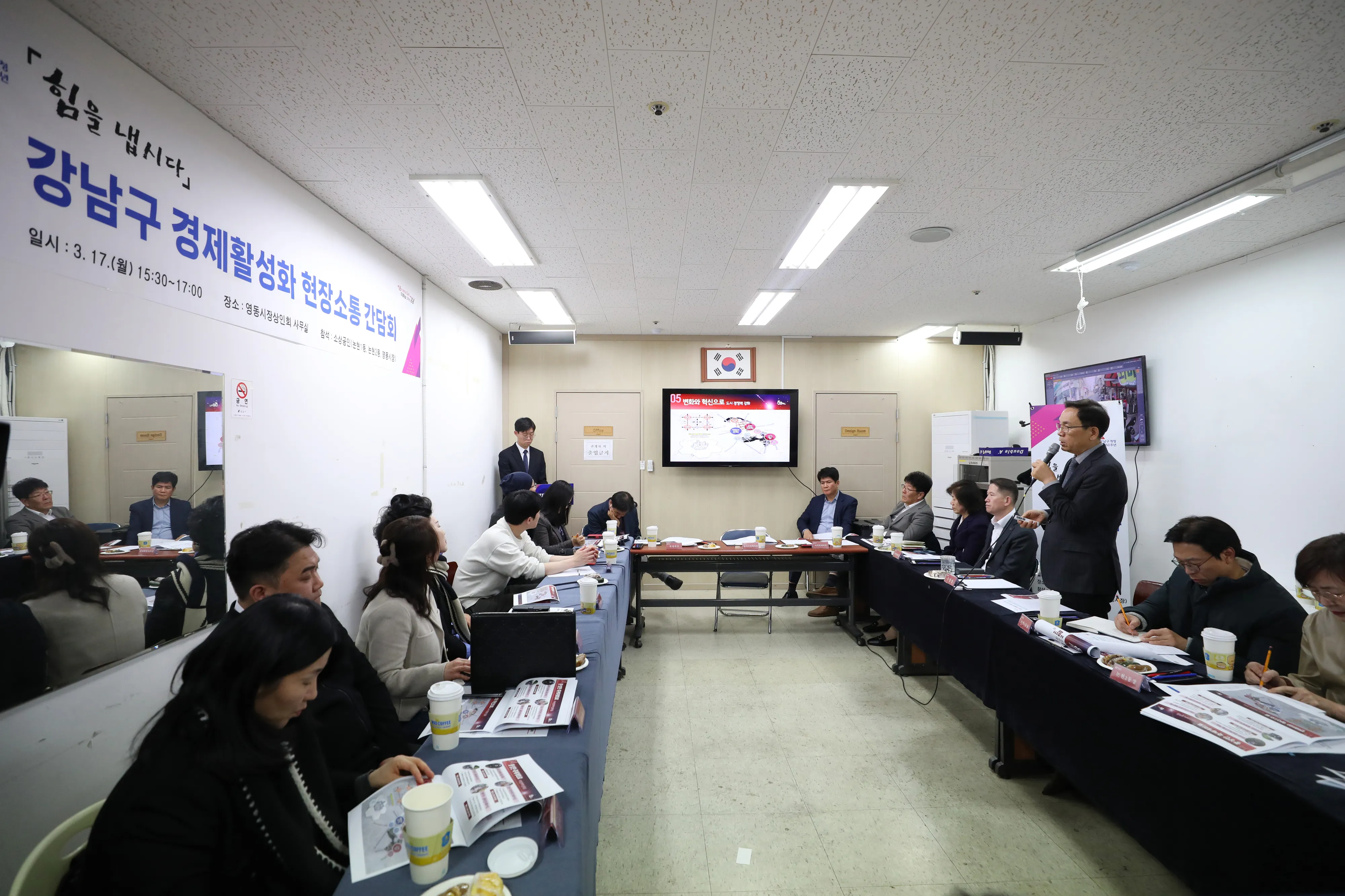 강남구는 이달 초부터 약 10회에 걸쳐 지역 상인들과 간담회를 갖고 있다. 이날 간담회는 논현 1·2동과 영동시장 소상공인을 대상으로 진행됐다. 강남구의 기업 수는 16만 3800여개로 소상공인은 전체 기업의 88%를 차지할 만큼 절대적이다. 특히 논현1·2동은 역삼1동에 이어 강남구에서 소상공인 등 경제인이 가장 많은 곳이기도 하다.