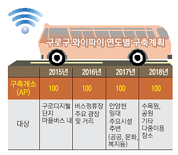 6일 서울 구로구 구로동에 사는 이경철(39)씨는 마을버스를 탔다가 갑자기 무료 와이파이(WiFi)가 잡혀 깜짝 놀랐다. 새로 잡힌 와이파이의 이름은 구로와이파이(GUROWIFI). 구에서 제공하는 것이었다. 이씨는 “대기업 건물의 로비도 아닌 마을버스에서 이런 것이 잡히니 놀라울 따름”이라면서 “구호라고 생각했던 ‘디지털 구로’라는 말이 실생활로 느껴진다”고 말했다. 이씨는 마을버스 무료 와이파이로 데이터 사용량이 줄어드는 만큼 이달 휴대전화 요금을 한 단계 낮출 계획이다.