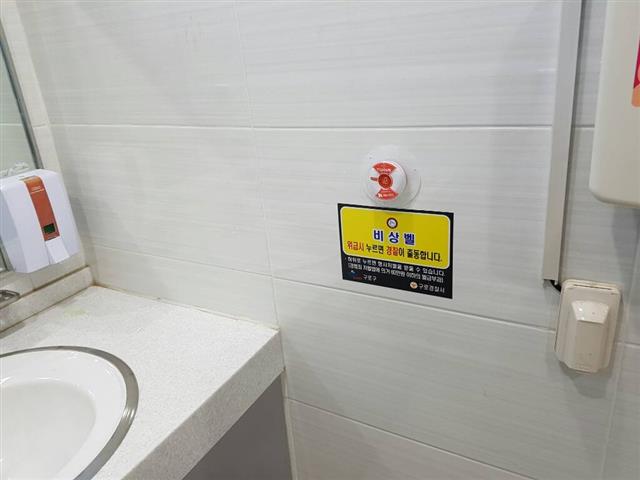 이 외에도 구는 최근 12곳에 비상벨 설치를 완료했다. 설치 장소는 잣절공원, 개웅산공원, 거리공원 2구역(신도림역 방면), 개웅어린이공원 등이다. 비상스위치와 경광사이렌으로 구성된 ‘단순 경보형’ 비상벨에서 112상황실로 즉시 문자가 발송되는 방식으로 바꿨다. 주변의 도움에 의지해야 하는 상황에서 언제든 경찰이 현장으로 긴급 출동할 수 있게 됐다. 구청 관계자는 “기존에 설치돼 있던 단순 경보형 비상벨은 남자화장실로 모두 옮겨 달았다”고 말했다.