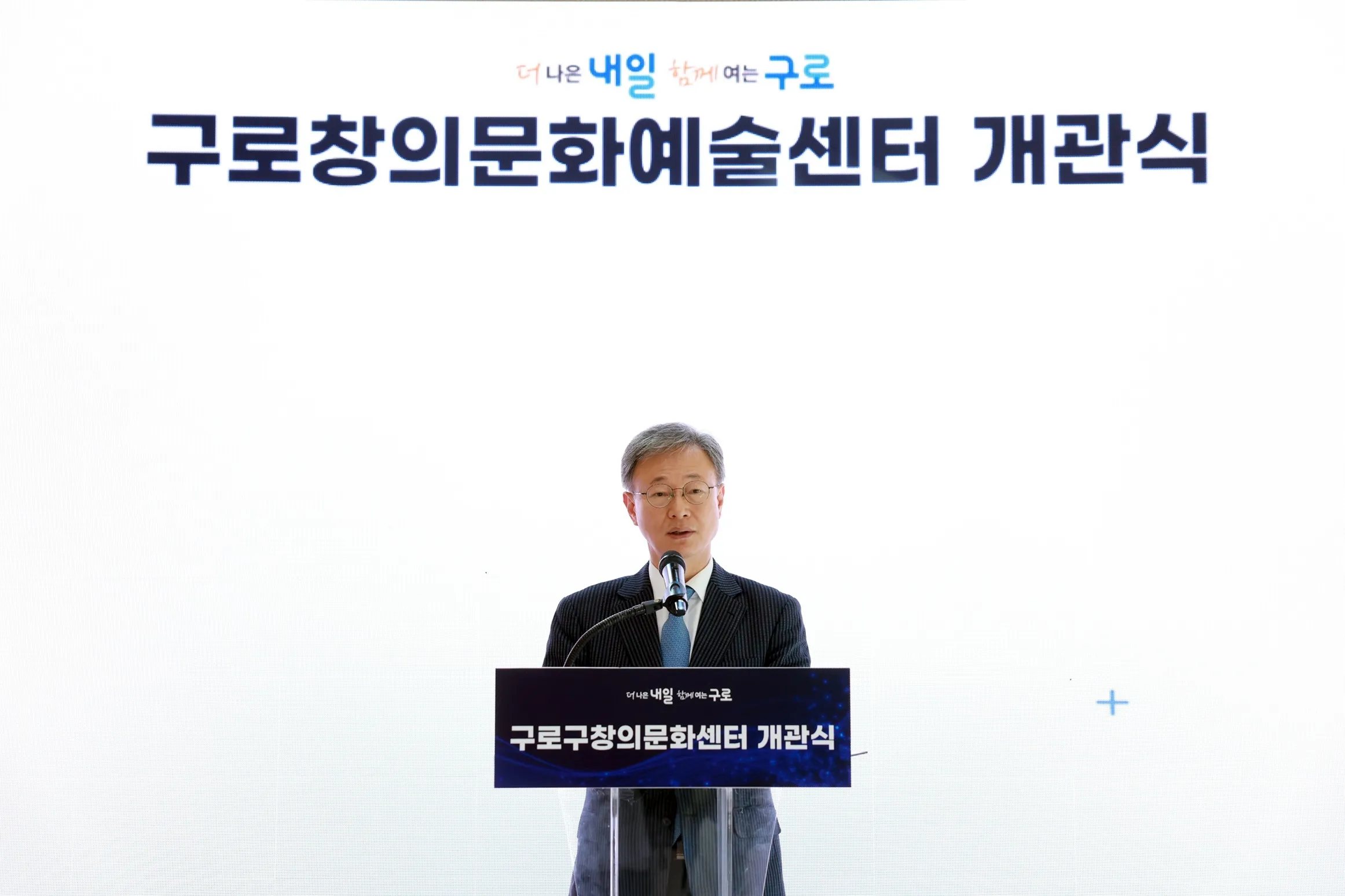 장인홍 서울 구로구청장이 지난 7일 구로창의문화예술센터 개관식에서 인사말을 하고 있다. 구로구 제공