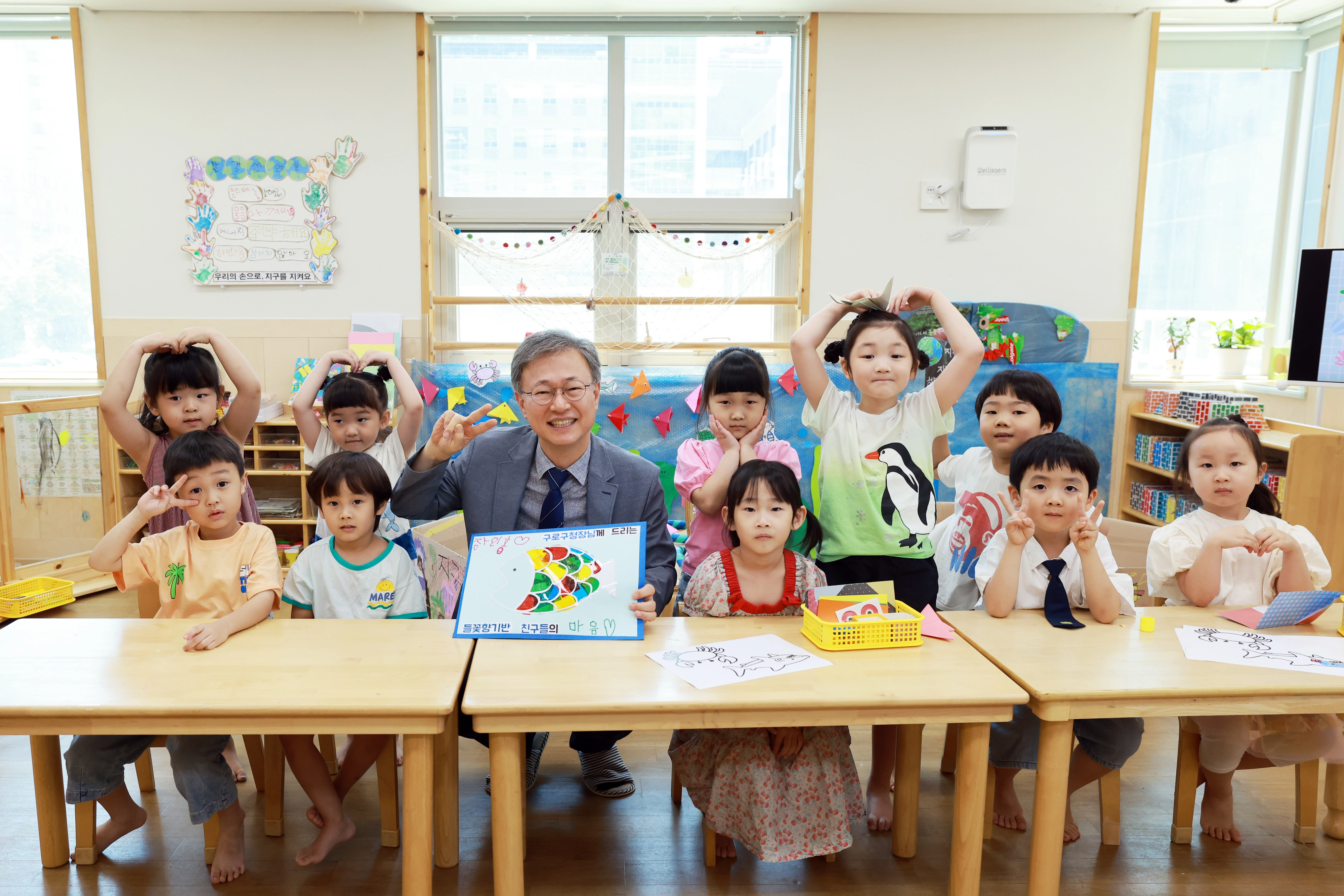 구청 인근 사랑채움어린이집에서는 아이들과 색종이로 물고기를 접으며 일일 교사로 나섰다.