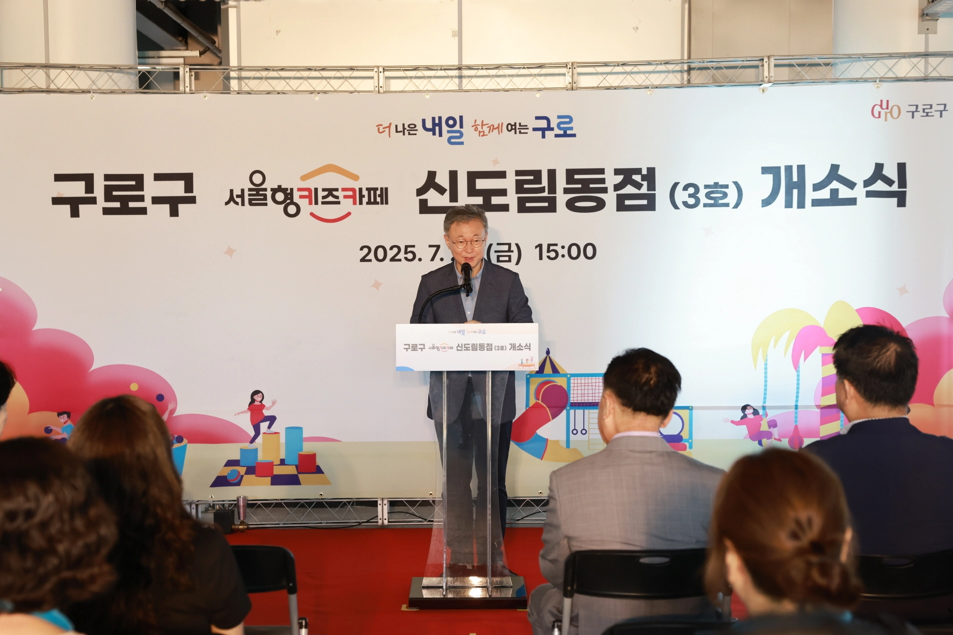 구로구는 지난 25일 장인홍 구로구청장을 비롯해 구의원, 어린이집연합회장, 관계 직원, 희망어린이집 원아 등 약 70명이 참석한 가운데 서울형 키즈카페 신도림동점 개소식을 진행했다. 이에 따라 구로구에는 지난해 10월과 올 2월 각각 문을 연 개봉1동점과 구로4동점에 이어 신도림동점까지 총 3개의 서울형 키즈카페가 생겼다.