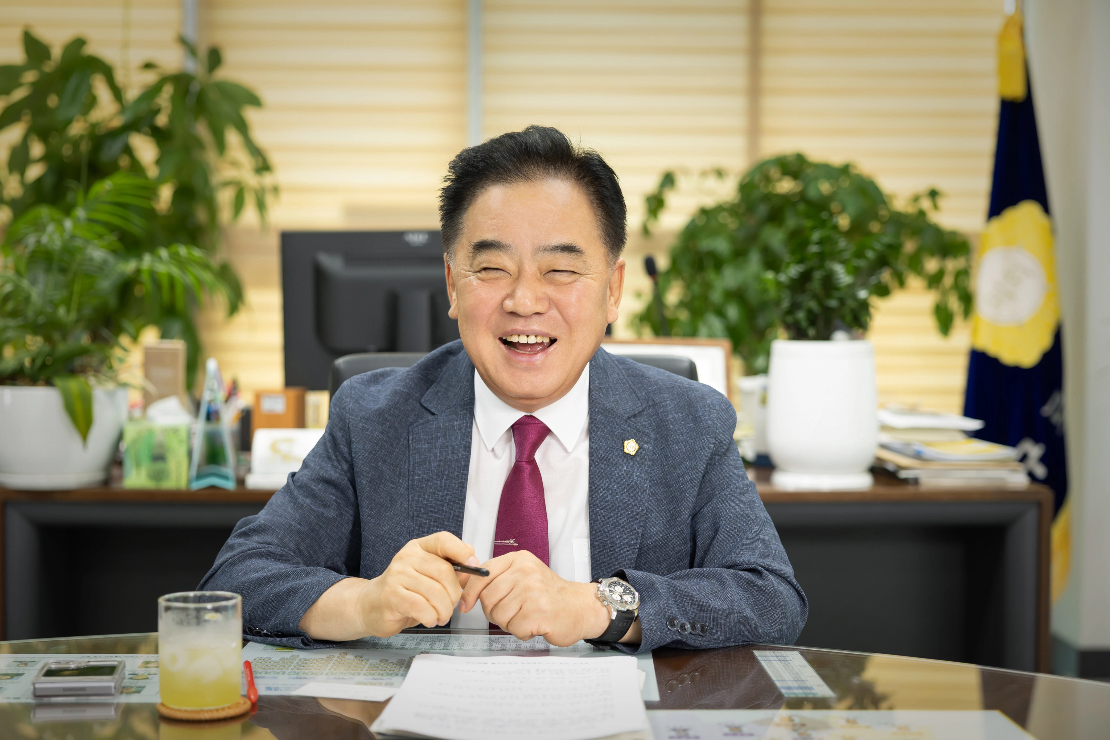 지역 문제를 앞장서 해결하고 싶어 시작한 이 길에서 벌써 35년 가까이 보냈다. 정 의장의 집무실 책상에는 ‘50에 읽는 논어’가 있었다. 그는 “계속해서 공부하고 주민들의 목소리에 귀를 기울이는 정치인이 되고 싶다”고 했다.