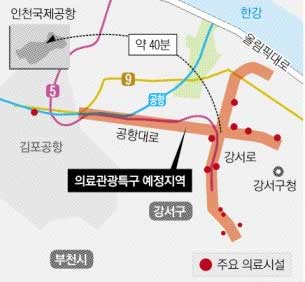 노현송 강서구청장은 “구가 가진 지리적 이점과 우수한 의료기술을 접목하면 의료관광 산업을 촉발시켜 지역경기 부양의 새로운 활로를 찾을 수 있을 것이라 확신했다”고 소개했다. 강서구에는 일본과 동남아로 갈 수 있는 김포공항이 있고, 전 세계로 뻗어가는 인천공항은 차로 40분 정도면 갈 수 있다. 지역 내에 병원과 종합병원 19개 가운데 척추·관절 병원이 10곳, 여성질환 3곳, 재활 2곳 등 특화 전문병원이 많다. 여기에서 착안해 의료관광산업을 집중 육성함으로써 새로운 소득 창출과 서울의 대표적인 ‘의료관광 중심지’로 성장하도록 노력을 기울여 왔다.