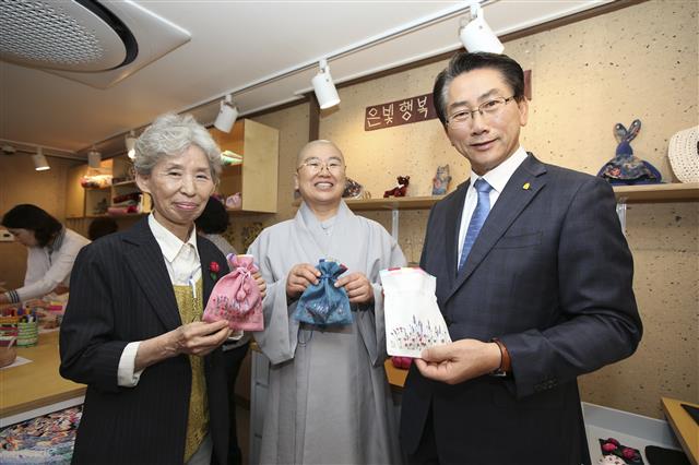 시니어 공방에서는 자투리 천이나 폐현수막, 헌 옷 등 버려진 물건을 재활용해 가방, 모자 등 생활 소품을 만든다. 외국인 관광객이 즐겨 찾는 삼청동에 있는 만큼 노인들이 만든 제품을 관광상품으로 발전시킨다는 복안이다. 경로당 정원 50명 가운데 공방에서 일하겠다고 지원한 노인은 20명 정도다.
