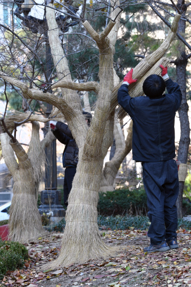 서울 >종로구 겨울옷 입는 나무들 입력 2017 11 27 17:36 수정 2017 11 28 02:22 기사 소리로 듣기 다시듣기 겨울옷 입는 나무들겨울이 성큼 다가온 27일 서울 종로구 세종문화회관 예술의 정원에서 직원들이 나무에 짚을 두르는 방한작업을 하고 있다.도준석 기자 pado@seoul.co.kr 겨울이 성큼 다가온 27일 서울 종로구 세종문화회관 예술의 정원에서 직원들이 나무에 짚을 두르는 방한작업을 하고 있다.도준석 기자 pado@seoul.co.kr ⓒ 트윅, 무단 전재 및 재배포 금지