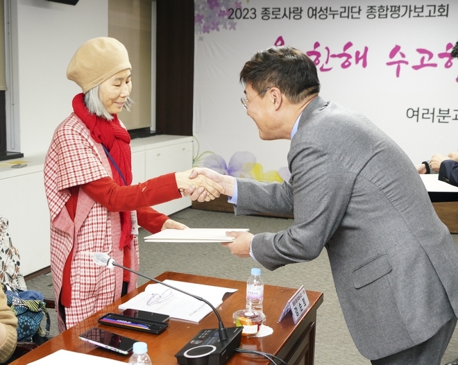서울 종로구는 이날 구청 기획상황실에서 열린 ‘여성누리단 종합평가보고회’에서 건의에 따른 조치 사항을 공유하고 우수단원 7명에게 표창장을 수여했다. 4년간의 임기를 만료한 단원 2명은 감사장을 받았다.