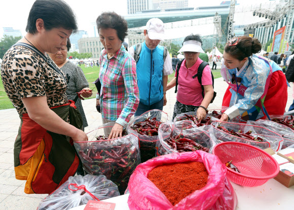 서울 >중구 빛깔고운 고추 들여가세요 입력 2014 08 26 00:00 수정 2014 08 26 00:00 기사 소리로 듣기 다시듣기 빛깔고운 고추 들여가세요25일 서울광장에서 열린 영양고추 핫(H·O·T) 페스티벌에서 시민들이 고추를 구입하고 있다. 27일까지 열리는 이번 행사엔 영양군 54개 단체 및 농가가 참여했다.연합뉴스 25일 서울광장에서 열린 영양고추 핫(H·O·T) 페스티벌에서 시민들이 고추를 구입하고 있다. 27일까지 열리는 이번 행사엔 영양군 54개 단체 및 농가가 참여했다. 연합뉴스 ⓒ 트윅, 무단 전재 및 재배포 금지