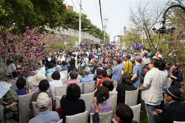 구는 해마다 봄·가을 다산성곽길의 아름다움과 가치를 알리고 지역예술인과 주민 간 소통의 장을 마련하기 위해 문화제를 열고 있다. 올 5월에는 다산성곽길 부부 1호가 탄생했다.