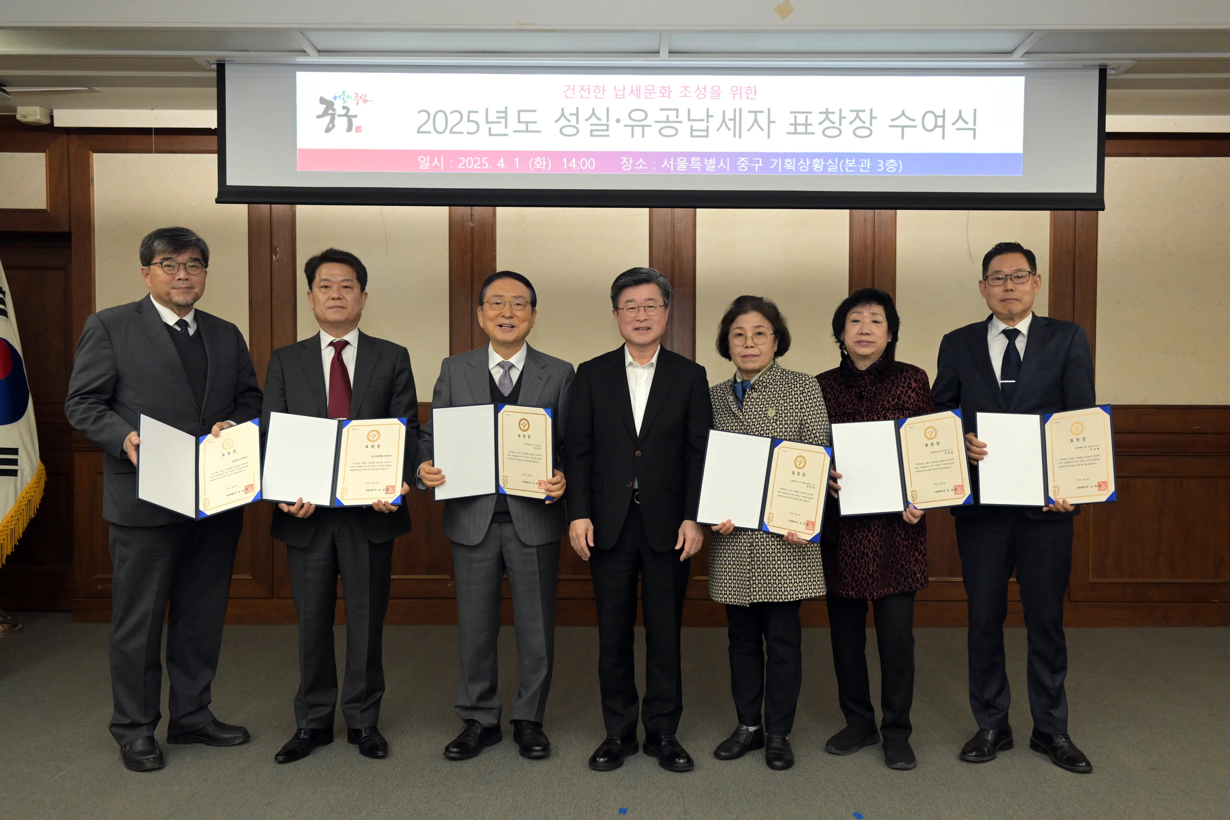 서울 중구는 지방세 납세 의무를 성실하게 이행한 모범 납세자에게 표창장을 수여했다고 2일 밝혔다.