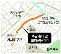 구 관계자는 “홍대 앞 걷고 싶은 거리는 보도와 차도가 혼재돼 있어 보행자들의 불편이 컸던 곳”이라고 설명했다.