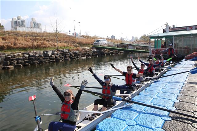 강변 도시인 서울 마포구가 지역 청소년을 위한 특별한 이벤트를 마련했다. 체력 소모가 커 ‘수상 마라톤’으로 불리는 조정 수업이다.
