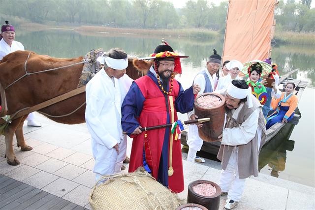 축제 첫날인 금요일 오전에는 주민 500여명이 참여하는 포구문화 거리퍼레이드와 함께 황포돛배 11척이 입항해 고을 사또가 새우젓을 검수하는 장면을 재현하는 행사가 펼쳐진다. 100m 길이의 초대형 새우김밥 만들기 퍼포먼스가 진행된다.