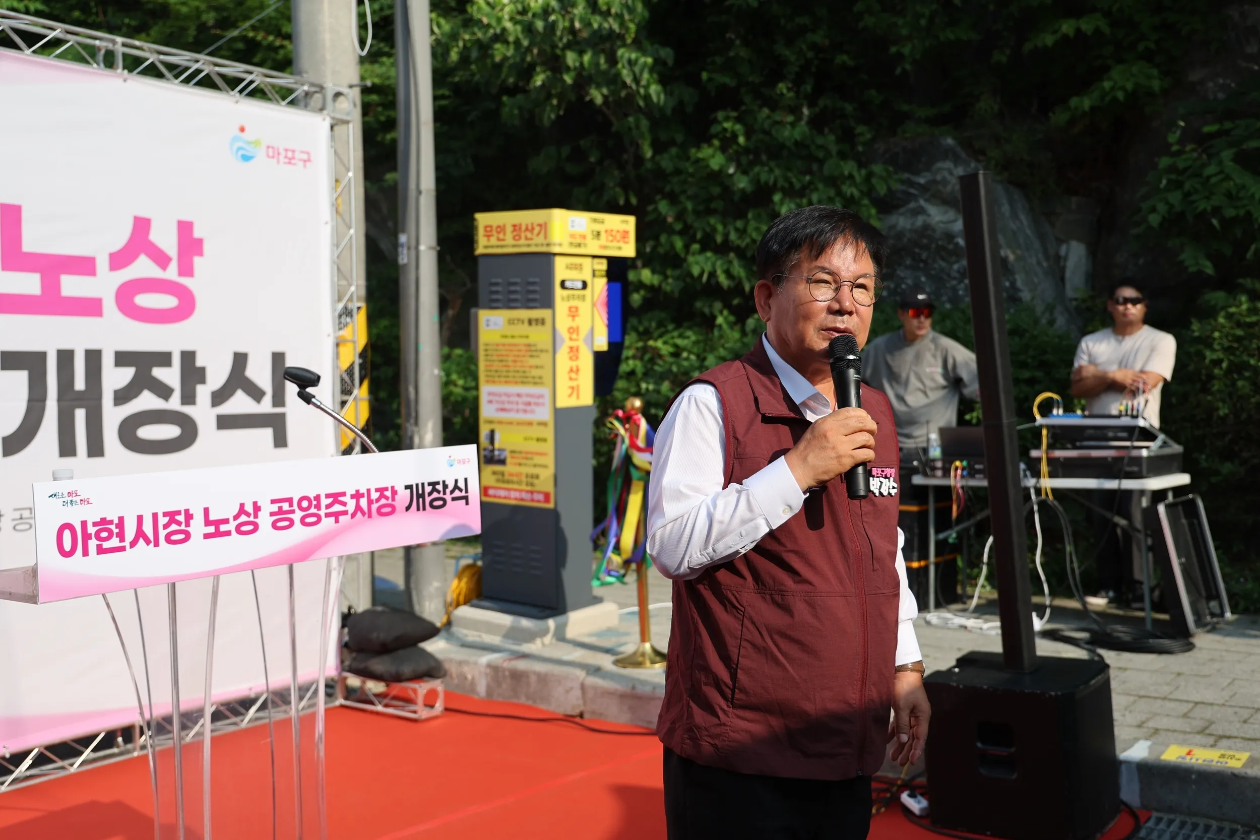박강수 서울 마포구청장이 아현시장 공영주차장 개장식에서 인사말을 하고 있다. 마포구 제공