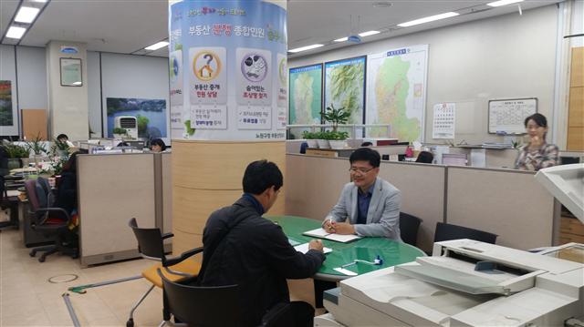 노원구가 부동산 복합민원 등에 대해 구민이 쉽게 접근해 언제든지 상담받을 수 있는 ‘솔루션 상담센터’를 부동산정보과에 설치해 운영에 들어갔다고 27일 밝혔다. 부동산 거래신고 시스템을 분석한 결과 2년 연속 서울시 25개 자치구 중 부동산거래량이 가장 많은 것으로 나타났기 때문이다. 지난해 지역 부동산 거래는 8456건, 올해 9월 현재 7866건으로 올해 3분기 부동산 거래량이 지난해 같은 기간보다 99.5% 늘었다. 올해 최고 증가율이다.