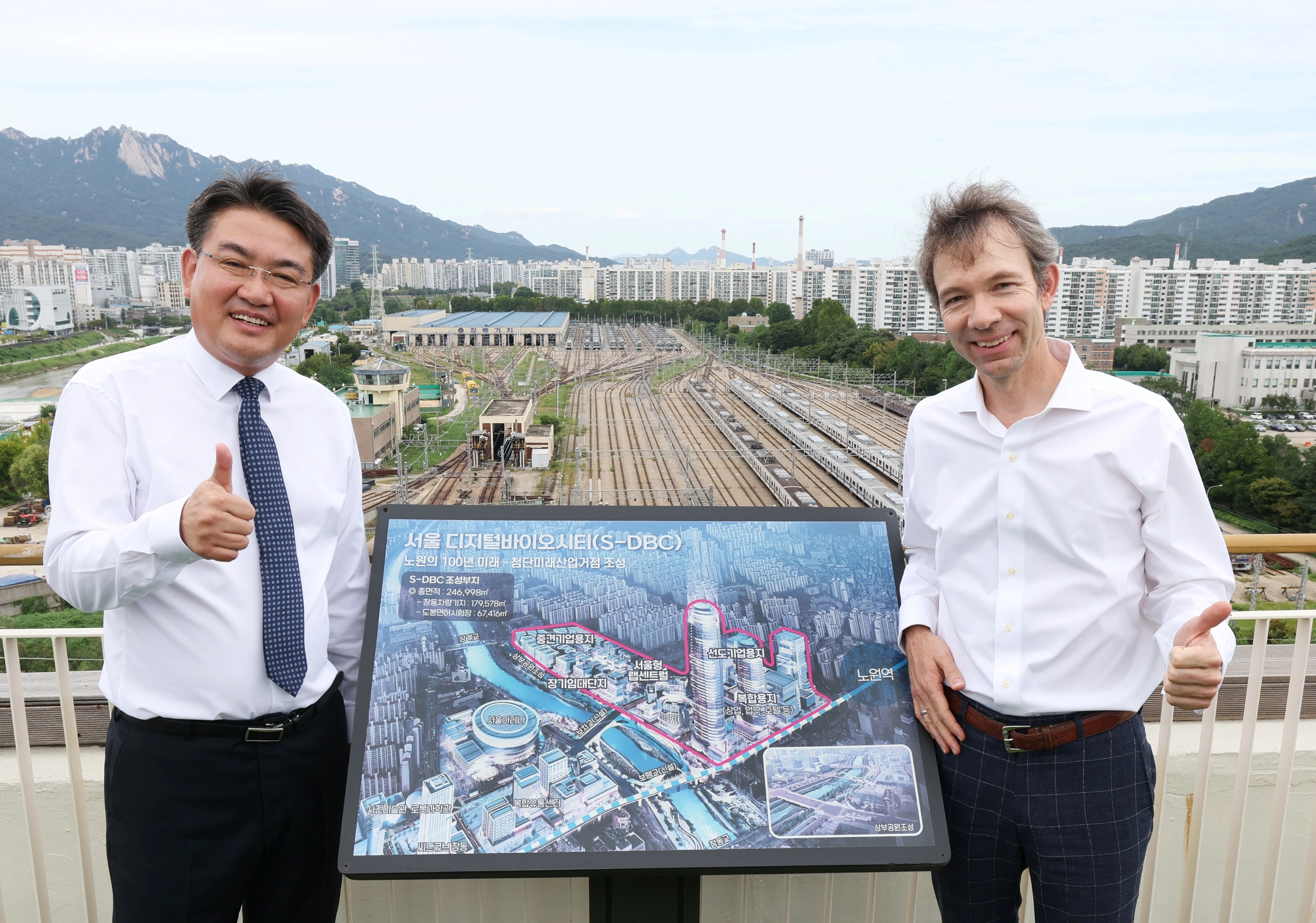 방한한 ‘보스턴 바이오의 주역’ 요하네스 프루에하우프 랩센트럴 회장이 지난 12일과 14일 노원구 S-DBC(서울디지털바이오시티)의 현장을 방문했다. 요하네스 회장은 S-DBC 추진 현황과 입지 여건에 대해 서울시와 노원구로부터 설명을 들었다.