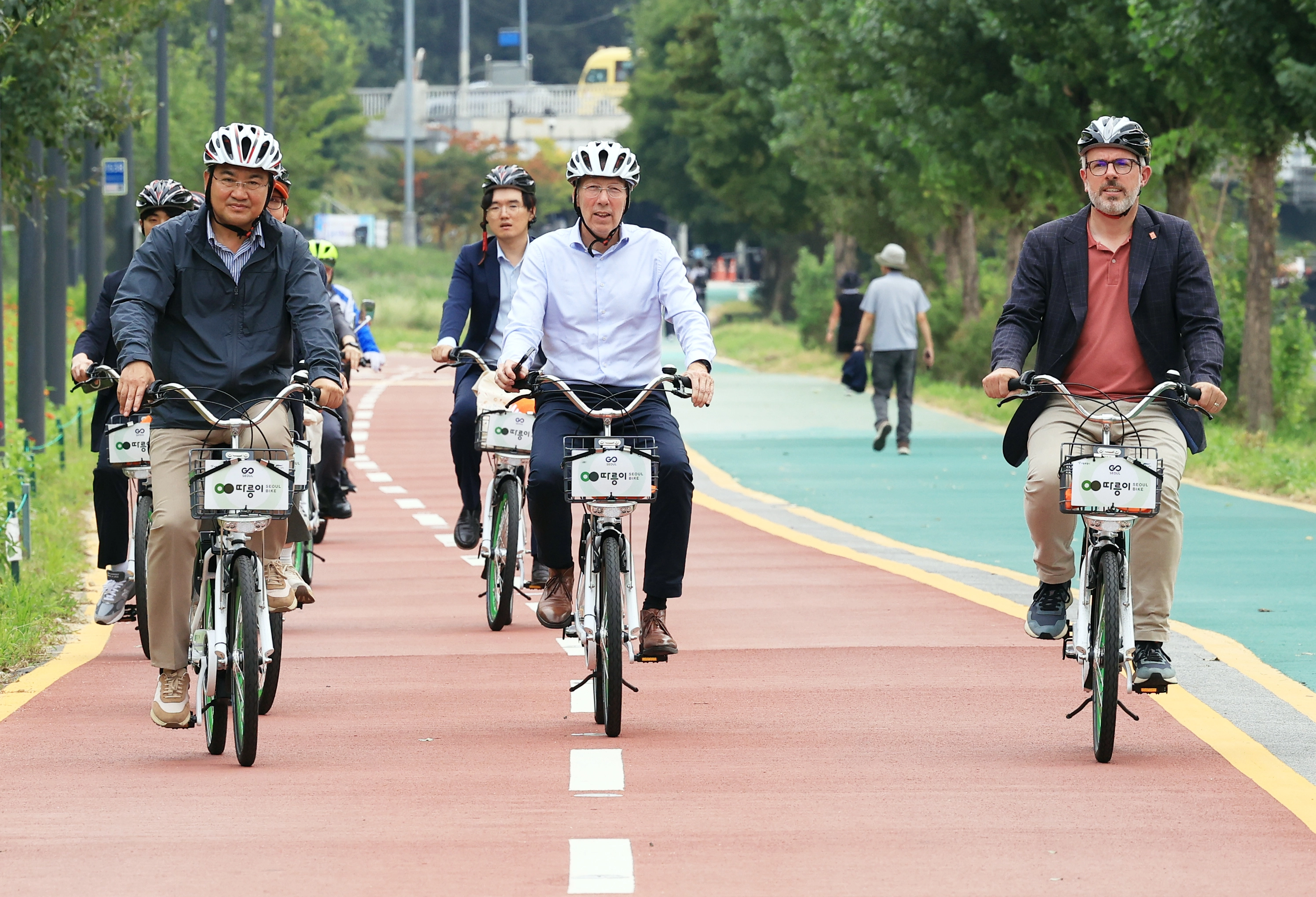 방문단은 서울시 공공자전거 ‘따릉이’도 타고 중랑천을 따라 노원구청으로 이동하면서 자전거 도로 개선 방안에 대해 의견을 나눴다.