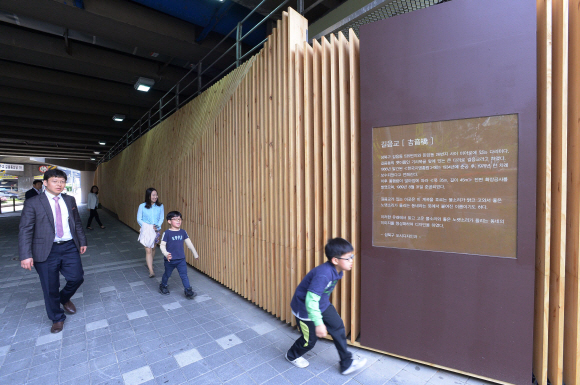 21일 서울 성북구가 길음교 아래에 디자인 구조물을 설치해 구민들이 쾌적한 환경 속에서 걷고 있다. 성북구가 걷기 좋은 거리 조성을 위해 추진한 보행환경 개선 사업이다.