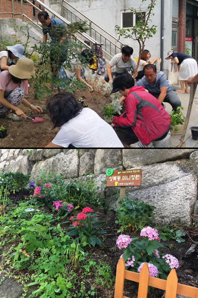 마을계획단을 중심으로 주민들이 격주 수요일마다 모여 버려진 쓰레기를 치우고 계절에 맞는 꽃을 심었다. 현재 성북동 주민센터 앞 공터에 위치한 1호 미니정원을 포함해 모두 6개의 미니정원이 조성됐다. 게다가 미니정원에서 수확한 식물을 이용해 요리를 배우는 ‘수확 파티’와 어린이장터, 알뜰시장 등도 열리고 있다.