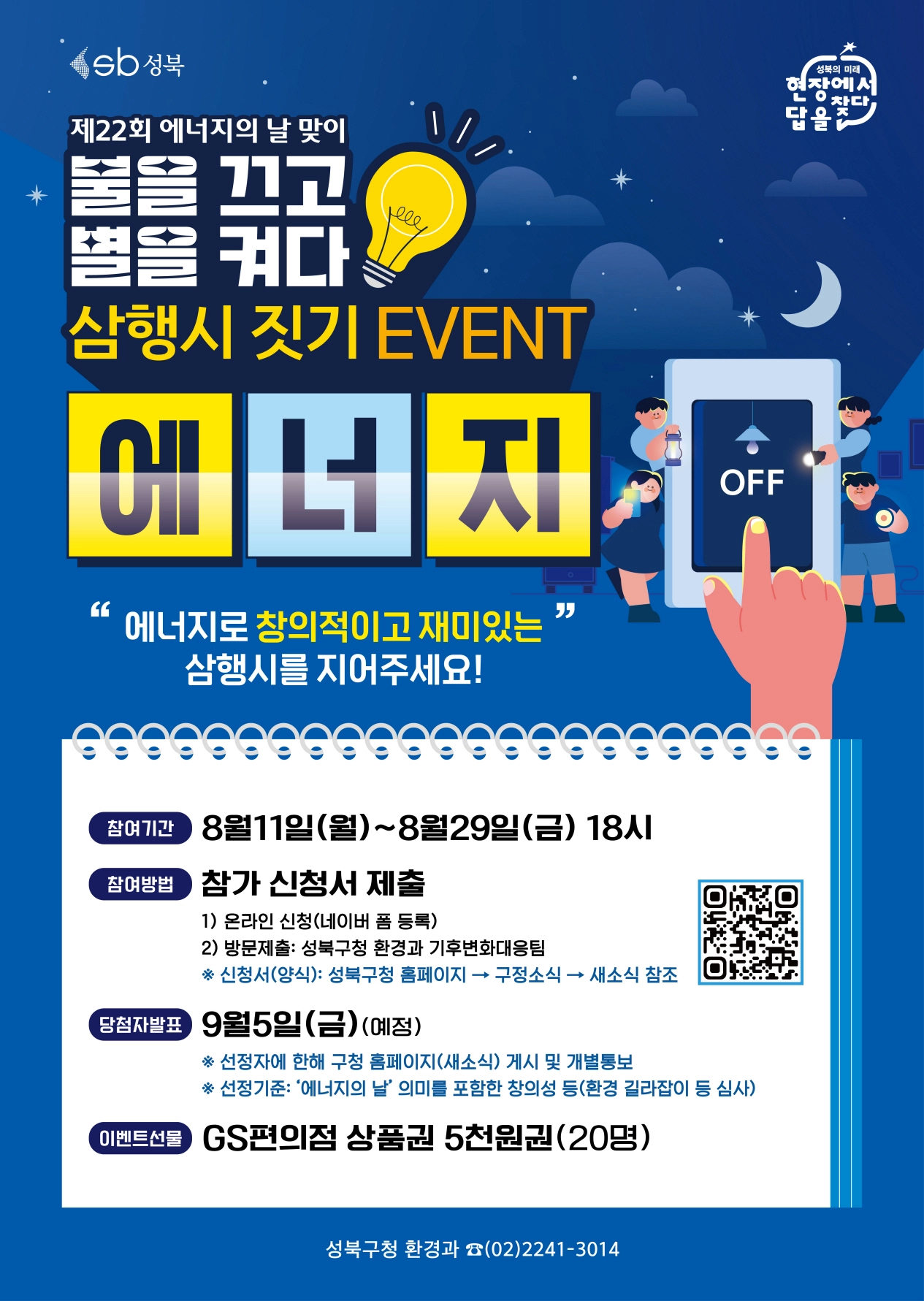 서울 성북구는 다가올 ‘에너지의 날’(8월 22일)을 기념해 ‘삼행시 짓기 이벤트’(포스터)를 연다고 30일 밝혔다.