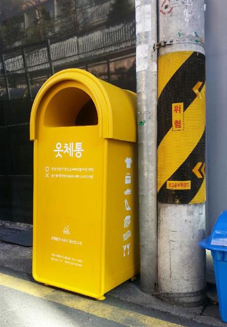 신개념 노랑 의류수거함 ‘옷체통’. 서초구 제공
