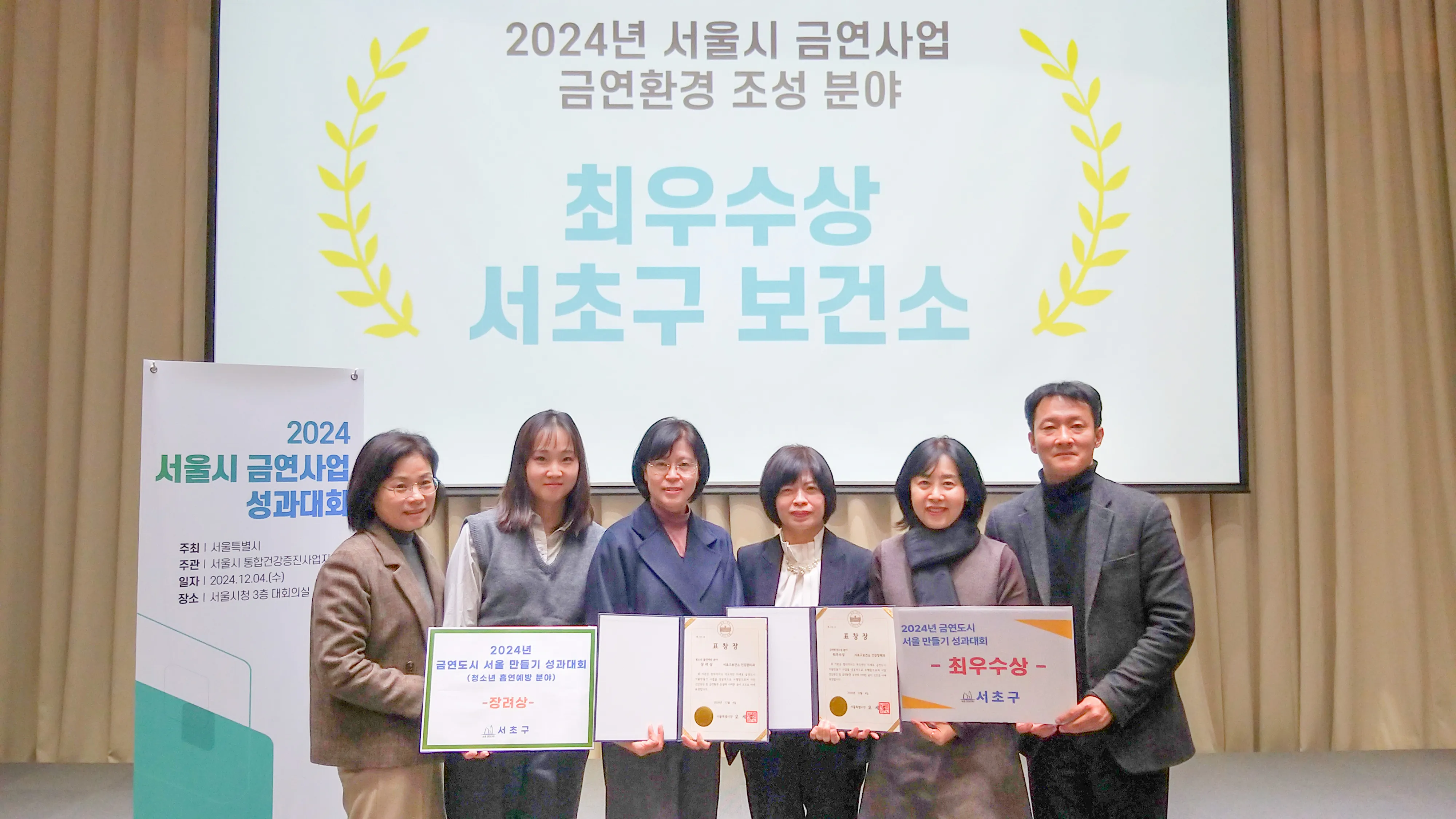 서울 서초구는 2024년 서울 금연도시 성과대회의 금연환경 조성 분야에서 최우수상(1위)을, 청소년흡연예방 분야에서 장려상(3위)을 받아 서울 자치구 중 유일하게 2개 부문을 수상했다고 5일 밝혔다.