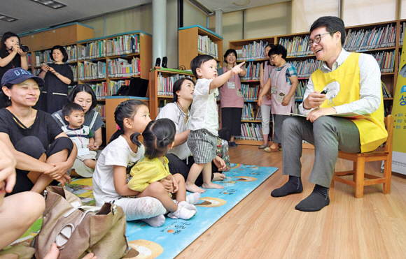 [현장 행정] 악어 흉내 내는 구청장… 아이들 “또 읽어주세요”