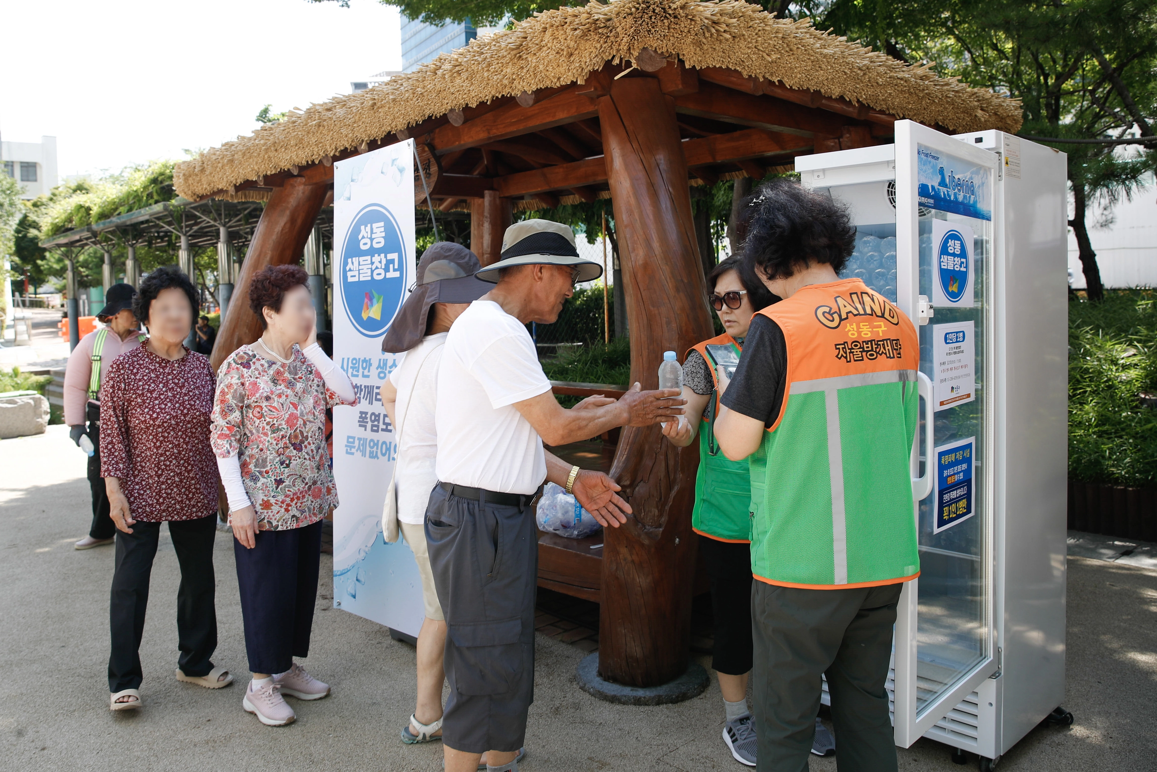 또 온열질환 및 탈수 증상 방지를 위해 시원한 생수를 제공하는 ‘성동 샘물창고’는 지난 9일부터 운영을 시작했다. 하루에 2번 생수를 지급하며 다음달 21일까지 운영한다. 정원오 성동구청장은 “폭염에 취약한 어르신, 장애인 등은 더욱 세심히 살피고, 무더위쉼터, 스마트쉼터와 같은 생활 밀착 폭염 저감시설 운영 등을 통해 구민 모두가 안전하고 건강하게 여름을 보낼 수 있도록 꼼꼼히 챙기겠다”고 말했다.