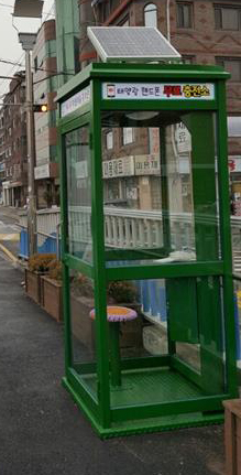 지난해 12월에는 불광천 해담는 다리 인근에 공중전화부스 형태의 ‘무료태양광휴대전화충전소’를 설치했다. 지붕에 40W의 태양광 장치를 장착했고 내부에는 휴대전화 2개를 꽂을 수 있는 케이블이 마련됐다. 홍은1동 호박골 마을에서는 홍제천 인근에 태양광으로 운영되는 분수대를 설치했다. 신촌동 봉원마을은 지난해 12월, 7024번 버스 종점에 태양광충전소인 ‘솔라카페’를 열었다. 이곳에서는 누구나 버스를 기다리며 추위 혹은 더위를 피하고 커피를 마실 수 있다.
