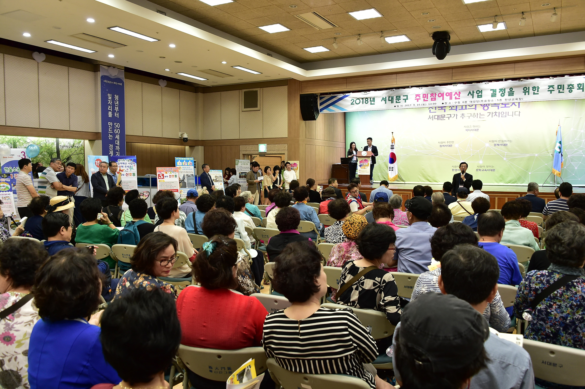 주민참여예산 주민총회  9일 서울 서대문구가 주민참여예산을 동별로 우선 편성한다고 밝힌 가운데, 사진은 지난해 9월 구청 대강당에서 열린 서대문구 주민참여예산 주민총회 모습이다.<br>서대문구 제공