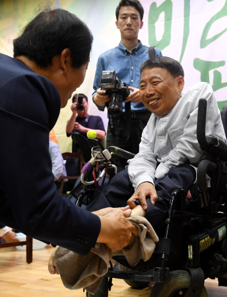 서울 >서대문구 장애인 발 씻겨 주는 문석진 서대문구청장 입력 2018 07 09 18:18 수정 2018 07 10 01:41 기사 소리로 듣기 다시듣기 장애인 발 씻겨 주는 문석진 서대문구청장9일 서울 서대문구청에서 문석진(왼쪽) 구청장이 지역에 사는 한 장애인의 발을 씻겨 주고 있다. 문 구청장과 구청 직원들은 사람을 최우선으로 하는 구정 운영을 다짐하며 이날 세족식을 진행했다. 연합뉴스 9일 서울 서대문구청에서 문석진(왼쪽) 구청장이 지역에 사는 한 장애인의 발을 씻겨 주고 있다. 문 구청장과 구청 직원들은 사람을 최우선으로 하는 구정 운영을 다짐하며 이날 세족식을 진행했다.연합뉴스 ⓒ 트윅, 무단 전재 및 재배포 금지