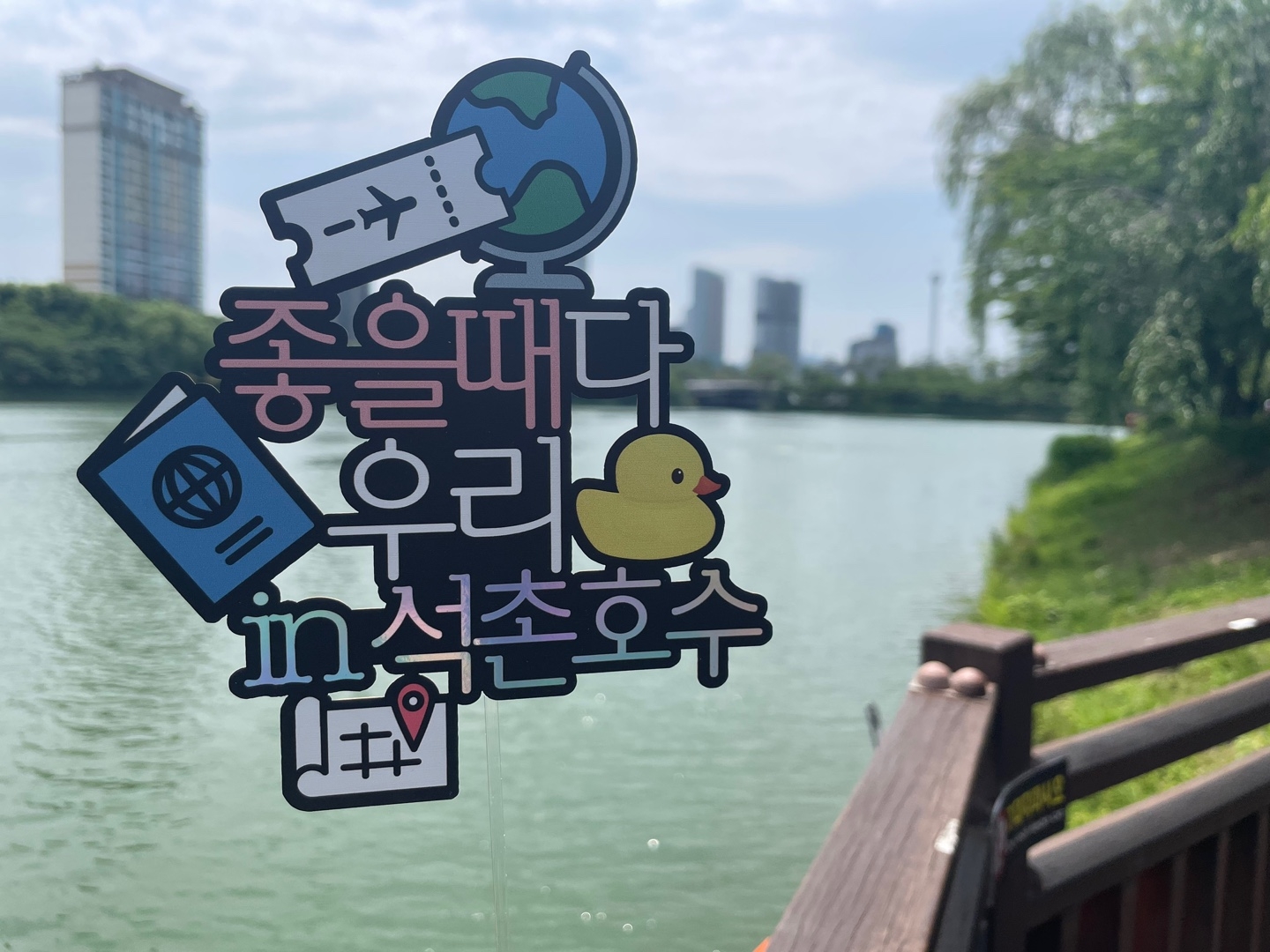 구는 석촌호수를 찾아오는 방문객이 사진으로 추억을 남길 수 있도록 다양한 디자인의 ‘여행 토퍼(topper)’를 무료로 대여해 준다. 토퍼는 손에 간단히 들 수 있도록 디자인과 문구를 활용해 만든 장식품이다. 석촌호수 내 송파관광정보센터를 방문하면 구가 직접 제작한 여행 토퍼를 최대 4시간 이용할 수 있다.