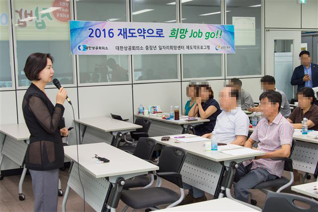 김민혁(46)씨는 “15년 다니던 건설기업을 그만둔 지 2년째”라면서 “새로운 인생을 준비하는 데 이번 강의가 큰 힘이 될 것 같다”고 말했다. 옆에 있던 최철인(51)씨도 “20년 다니던 은행을 명예퇴직하고는 사실 집 밖에 나가기가 싫었다”면서 “1년을 놀고 있으니 너무 무기력해져서 이번 강의를 시작으로 새로운 직업을 찾으려 한다”고 말했다.