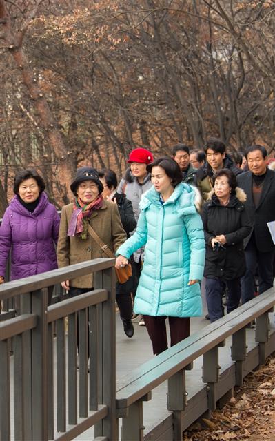 지난 8월 공사를 시작한 계남공원 데크숲길은 지난 5일 마무리됐다. 남명초등학교 옆 등산로 입구부터 모두 304m의 데크숲길이 만들어졌다. 산행 중 휴식을 취할 수 있도록 곳곳에 간이쉼터도 들어섰다. 숲길 주변에는 단풍과 꽃이 아름다운 나무 4000여주를 심어 볼거리를 더했다. 구는 내년에도 데크로드 470m 구간을 확대 조성해 다락골 약수터까지 연결할 계획이다.
