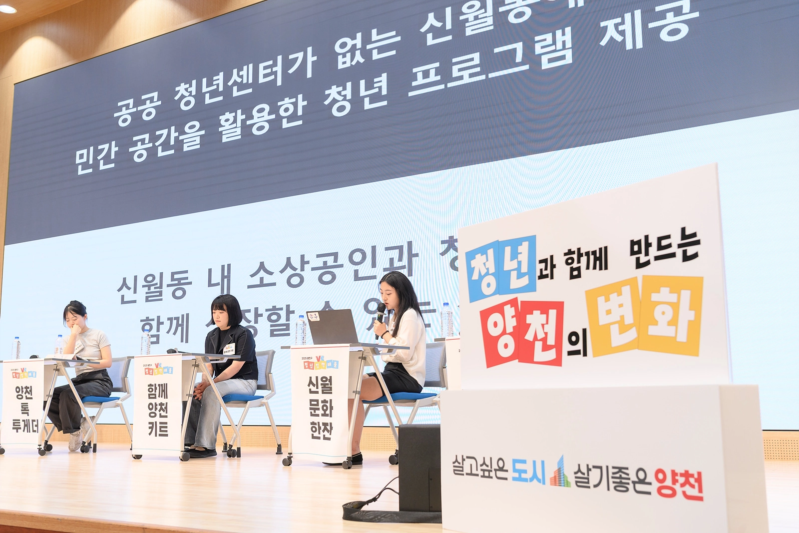 이번 행사에는 지난 3월부터 공모받은 27개 팀 가운데 서류심사 등을 통과한 5개 팀이 참가했다. 각 팀은 ▲청년 인재 풀 시스템 ▲양천 톡 투게더 ▲함께 양천 키트 ▲신월, 문화 한잔 ▲양천 팝업 데이 등 정책 아이디어를 발표하고, 예산·사업 현실성·사업 타깃 등에 대한 예리한 질문을 서로 주고받았다.