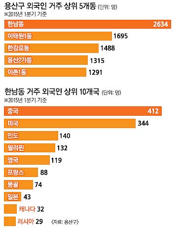 ●남부 재개발촌 기초수급자 352명으로 북부의 6배… 한남동 거주 외국인 2634명으로 용산구 중 가장 많아