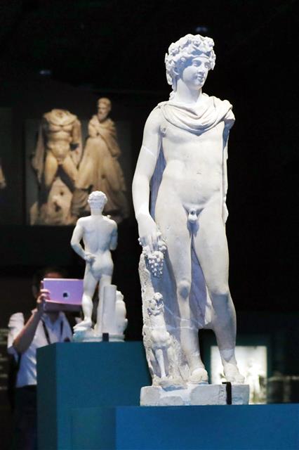 로마 이전 고대 문명을 엿보다… 국립중앙박물관 ‘에트루리아´ 특별전  8일 서울 용산구 국립중앙박물관에서 열린 ‘로마 이전, 에트루리아’ 특별전 언론공개회에서 취재진이 바쿠스 상을 촬영하고 있다. 에트루리아는 기원전 10세기 무렵 이탈리아반도 중북부 지역에 등장해 약 1000년간 지속한 고대 국가다. 9일 개막하는 전시에선 피렌체국립고고학박물관, 구아르나치 에트루리아박물관, 체치나고고학박물관 등지에서 온 에트루리아 유물 300여점을 선보인다.<br>뉴스1