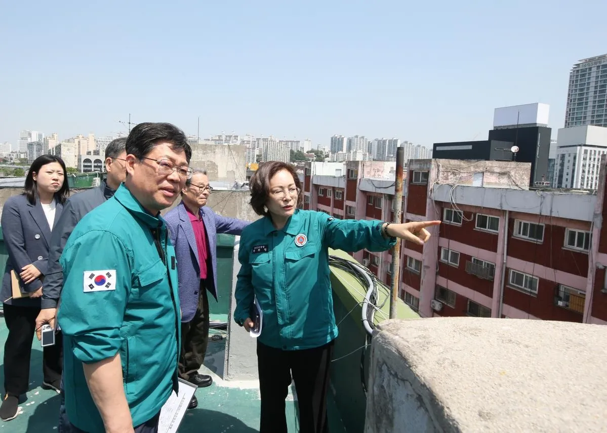 중산시범아파트에서도 현장 점검은 이어졌다. 이곳은 1996년부터 노후 건축물(안전등급 D등급)로 관리된다. 박 구청장은 현장에서 지반침하 위험 여부를 중심으로 아파트를 점검했다.