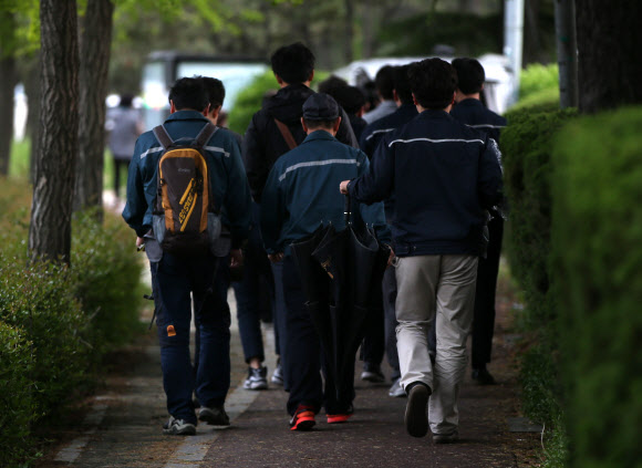 현대중공업 근로자들 무거운 퇴근길.<br>