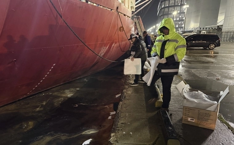 부산 감천항 러시아 선박서 기름 70ℓ 유출…해경 방제 작업