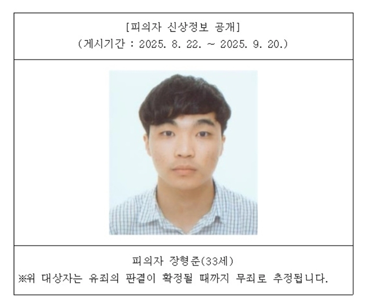 울산지검은 이날 신상정보공개심의위원회를 개최한 결과 장 씨의 신상정보를 공개하기로 결정했다고 22일 밝혔다. 장 씨의 이름과 나이, 얼굴은 이날부터 30일간 울산지검 홈페이지에 공개된다.