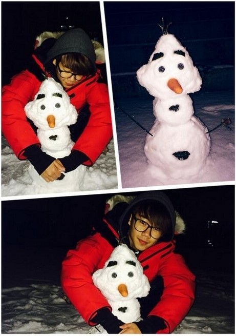 공개된 사진 속 박지빈은 디즈니 애니메이션 ‘겨울 왕국’의 캐릭터인 올라프 모양의 눈사람을 만들었다. 눈사람을 안고 뿌듯한 듯 미소 짓고 있다.