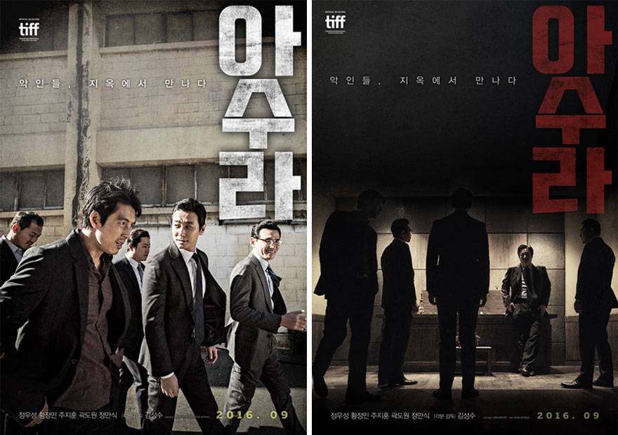 김성수 감독의 범죄액션영화 ‘아수라’는 지옥 같은 세상에서 살아남기 위해 싸우는 나쁜 놈들의 이야기다. 불교 6도에서 인간계(人間界)와 축생(畜生) 사이에 있는, 끊임없이 서로 싸우고 전쟁을 일삼는 ‘아수라도’(阿修羅道)에서 제목을 따왔다.